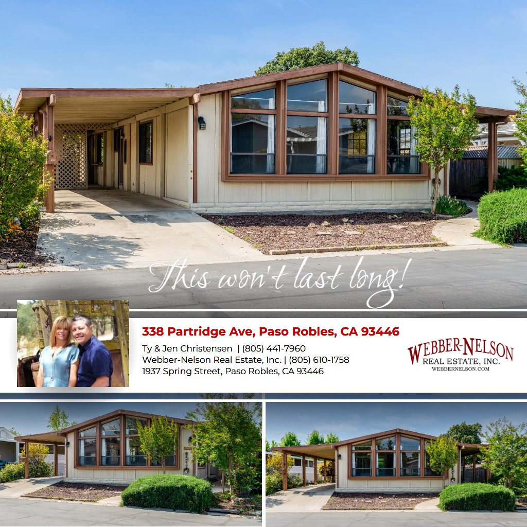 Affordable 2-Bedroom Home in Quail Run Senior Estates – 55+ Gated Community Located in the desirable Quail Run Senior Estates, this 2-bedroom, 2-bathroom manufactured home offers 1,542 square feet of comfortable living space on a permanent foundation system. This is a great opportunity to make your mark with some updates and personal touches. The home features mostly new carpet throughout, plus new laminate flooring in the kitchen and both bathrooms. The layout includes a spacious living area, a functional kitchen, a separate dining space, and an indoor laundry room for added convenience. Enjoy the large covered patio—great for relaxing or entertaining—and a handy storage shed for all your extras. Quail Run is a gated 55+ community in Paso Robles offering resort-style amenities, including a pool and spa, pickleball court, clubhouse, and quiet, well-maintained streets. It’s the perfect setting to enjoy the Central Coast lifestyle with a welcoming and active community. With solid bones, recent flooring updates, and plenty of potential, this home is a fantastic value in one of Paso’s most sought-after senior communities.